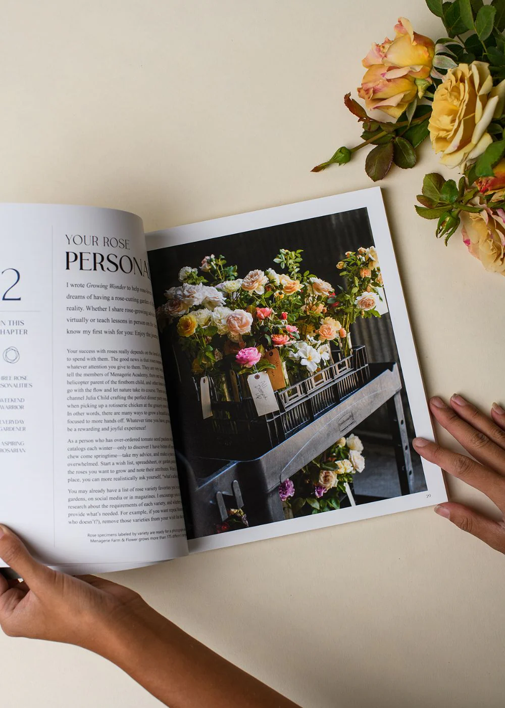 As a special Thank You for ordering your author signed copy of Growing Wonder directly through our website here you will receive a digital download copy of The Rose Gallery, an exploration of garden rose color families as they are known here at Menagerie Farm & Flower plus a free gift with purchase from Felicia tucked inside the box.